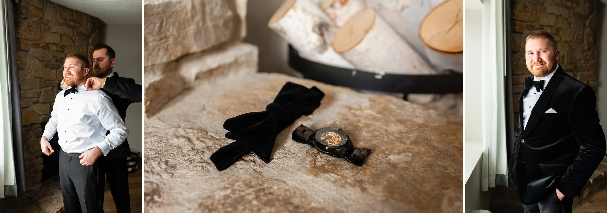 The gents were in tuxes, and everyone looked incredibly sharp. Chris had a super dapper velvet jacket and bow tie for his wedding attire. Just incredibly classy. While getting ready the gents were laughing and sharing stories to ease the jitters.