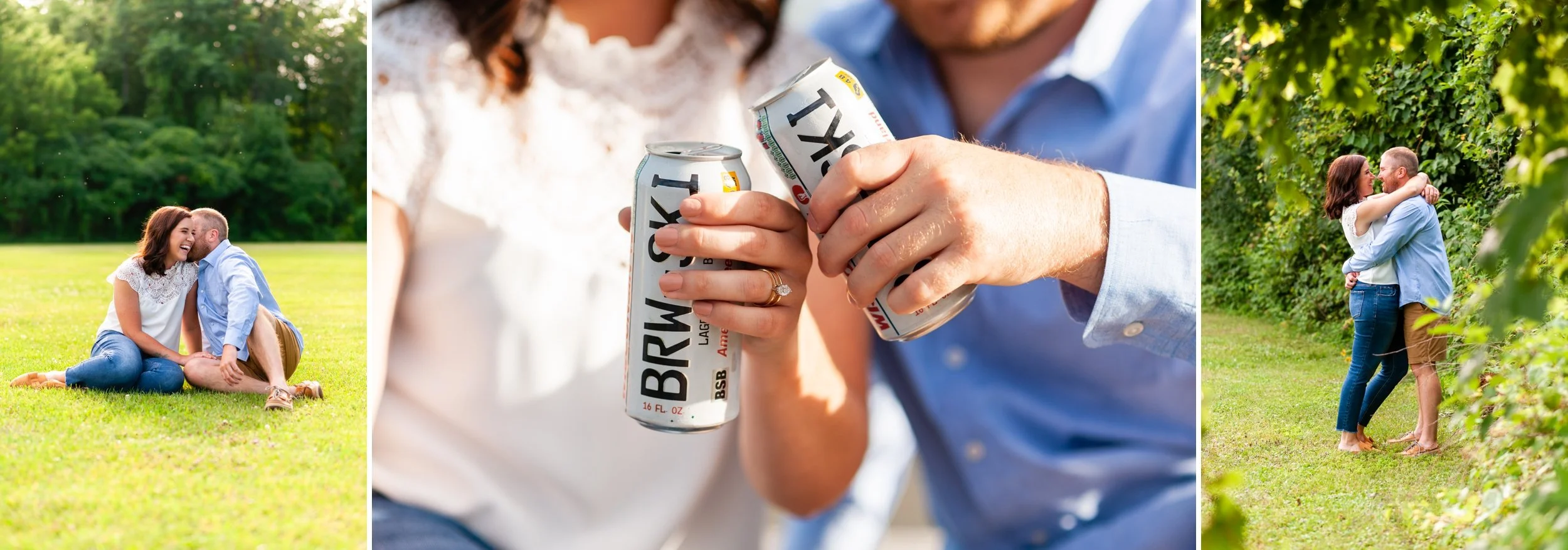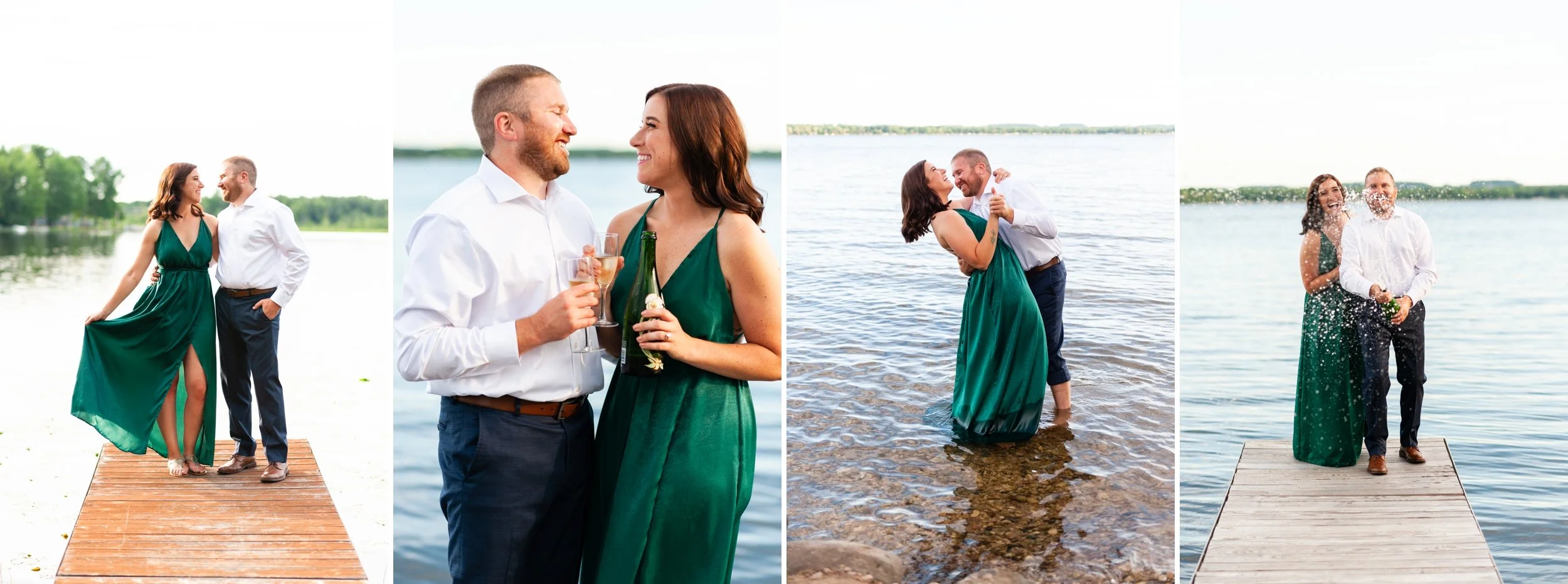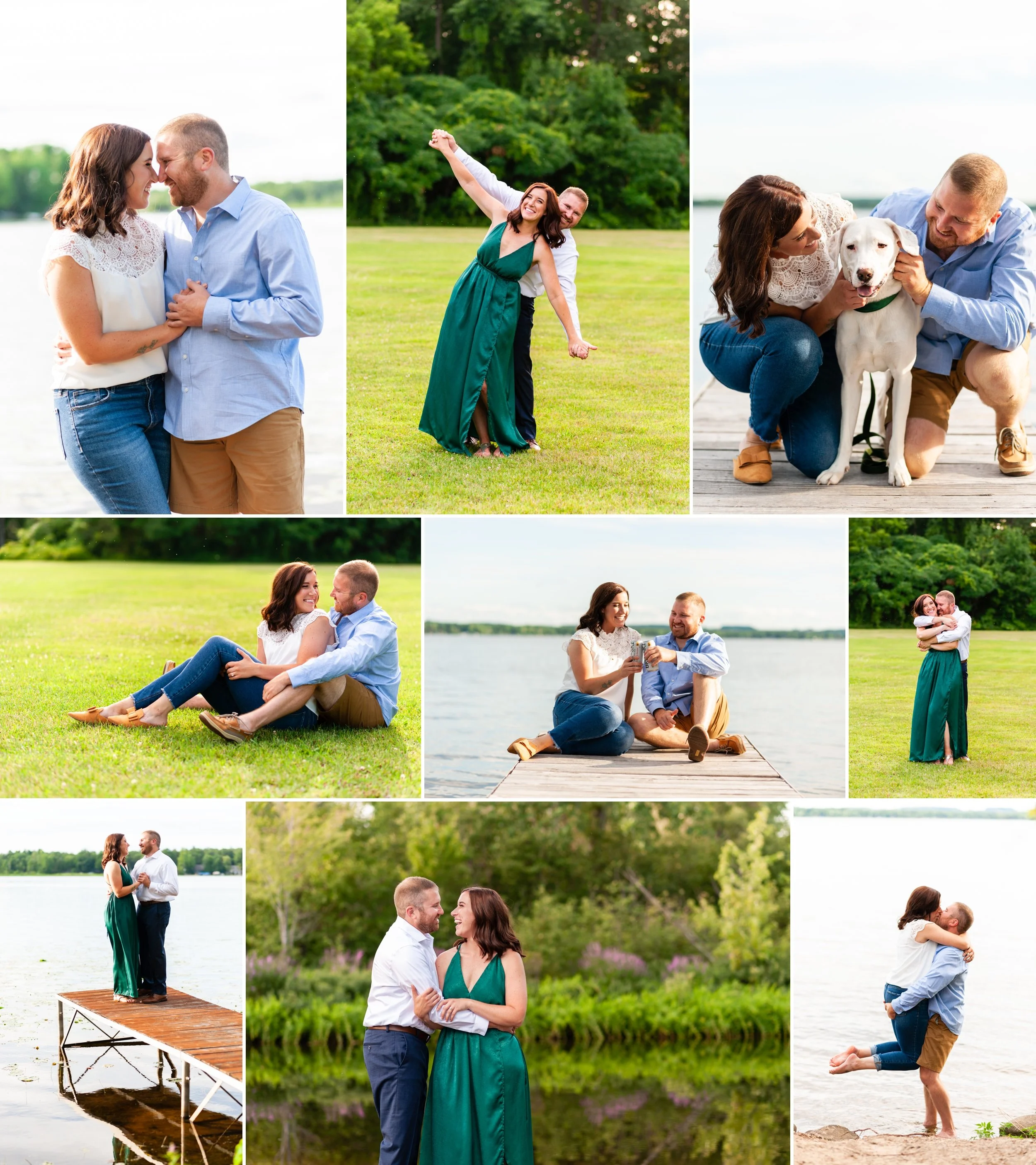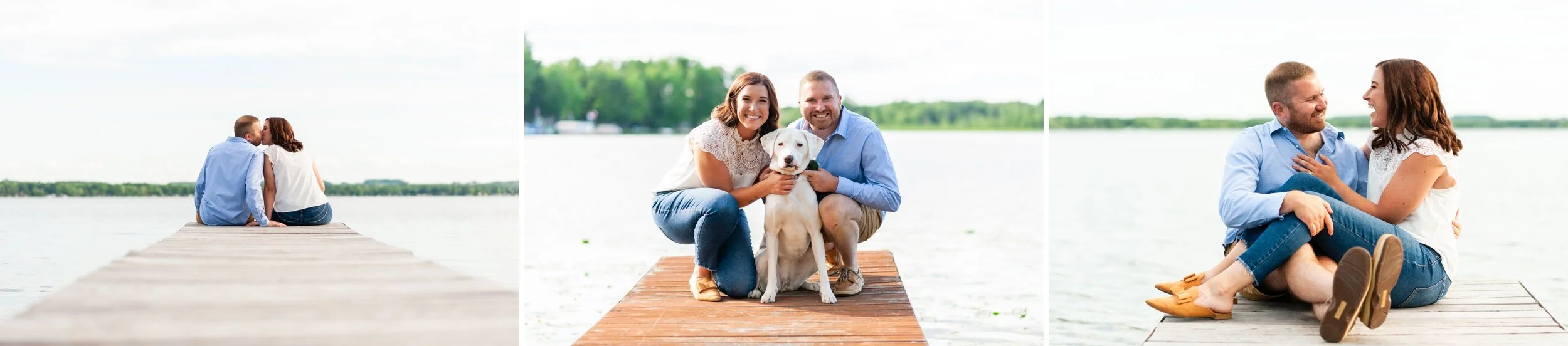We were gifted a beautiful summer day to celebrate Sam and Chris's engagement and their outfits were absolutely perfect like a lakefront chic, cute but casual which allowed them to sit on the dock with their dog and enjoy a beer with one another. They then switched to a more formal look at the very end of their session and even adventured into the water to splash around together, we love seeing that sense of adventure! It made for some great memories and photos!